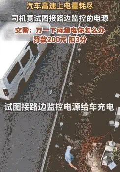 在许广高速衡阳段,一辆白色电动面包车缓缓驶入监控下方的应急车道;车身有一部分跨越在行车道里,停车状态相当危险。导致其车辆停驶的原因是车辆电量耗尽,于是更离谱的事情发生了;司机在路边监控位置找到电源,试图用监控电源给车辆充电。